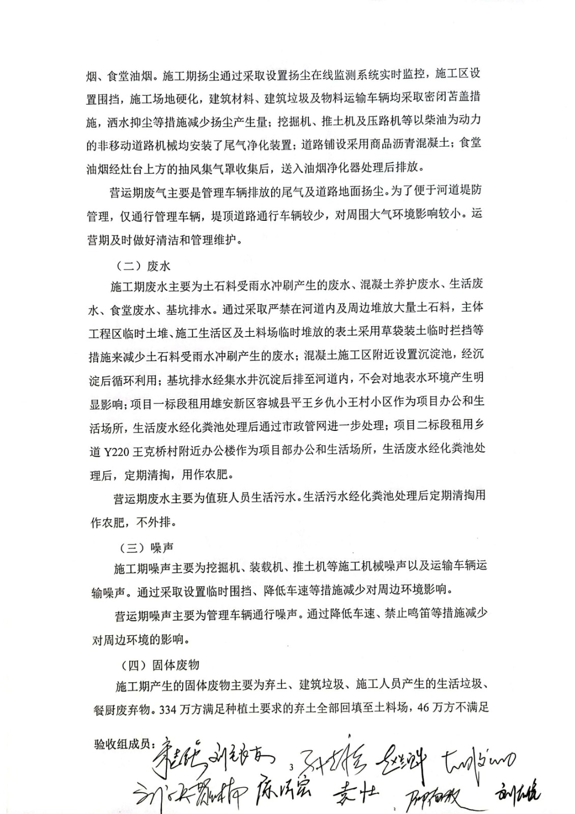 雄安新區白溝引河右堤防洪治理工程項目竣工環境保護驗收意見