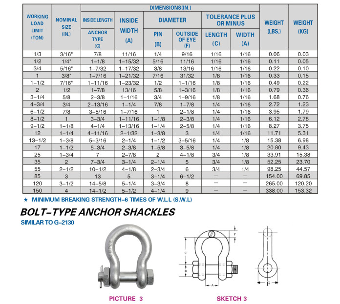 DROP FORGED BOLT-TYPE SHACKLES