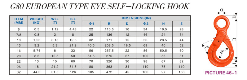G80 EUROPEAN TYPE EYE SELF-LOCKING HOOK
