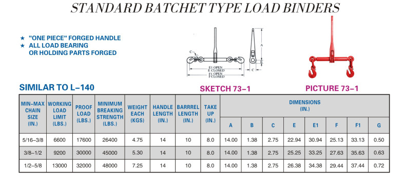 STANDARD BATCHET TYPE LOADE BINDERS